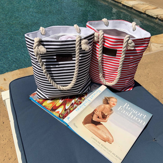 Striped Canvas Tote Bag: Black