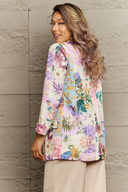 Houndstooth Lapel Collar Long Sleeve Blazer